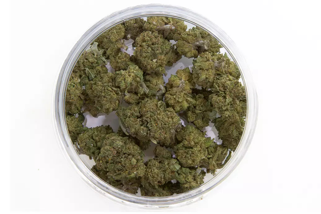 As flores Strawberry CBD apresentam botões pequenos e médios da variedade morango CBD, com genética pura.